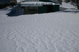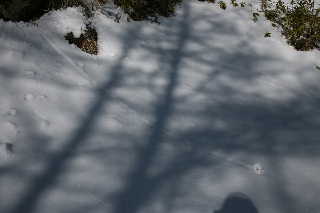 そして、スラロームのコースを下り、うその口まで来ると、やはり雪なし・・・ロッヂに戻るコースの約1/5が雪のない最悪の状態を走破することになりまし